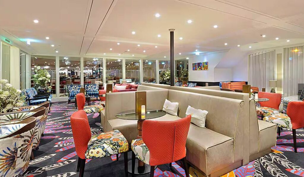 Des fleurs colorées et des motifs géométriques partout à bord montrent immédiatement que l’AmaViola n’est pas un bateau de croisière fluvial ordinaire.