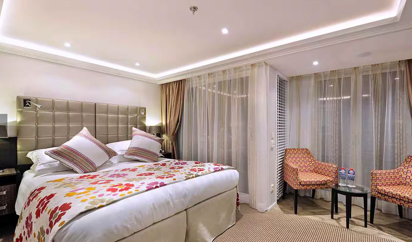 À bord, les voyageurs apprécient une décoration lumineuse et fleurie, un service attentif assuré par un équipage d’une cinquantaine de personnes, ainsi que des installations de qualité comme un salon panoramique, un pont soleil avec piscine, un espace bien-être ou encore une salle de fitness. L’expérience culinaire est soignée, souvent inspirée des traditions locales, et l’ambiance à bord mêle détente et élégance, pour une croisière paisible au fil du Danube.